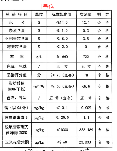 销售合同交割数量以仓内实际数量为准,如出现溢余,溢余部分买方必须按标的成交价同价提清,相应货款由买方直接支付到卖方指定账户。 请有意向参与交易的会员提前扦样,了解确认质量情况,确保所竞买的粮油符合自身企业使用用途。买方未提前看样或看样后参与应价并成交的,视为对仓内玉米质量已认可,应承担竞买后相应的责任与风险。 本次成交采购标的: