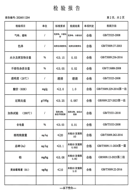 《检验报告》附后,请有意向参与交易的会员提前扦样,了解确认质量情况,确保所竞买的粮油符合自身企业使用用途。 本次成交采购标的: