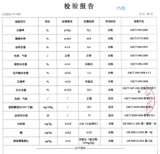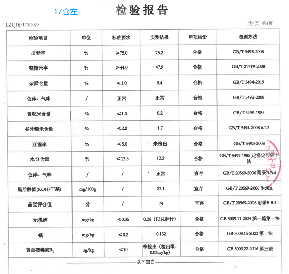 销售详情: 1.包装规格:散粮 。 2.出库费:出库费用由卖方承担。 3.货款期、出库期:买方于2026年3月10日前将全部货款汇至四川粮油批发中心指定银行账户,于2026年3月31日前完成出库。 4.水杂增减量:因粮食在保管过程中水分降低,此批稻谷销售按照清单注明的水分标准,每低0.5%,增量0.65%,由买方承担,无杂质增(扣)量。 5.其他要求:计量以卖方存储库点地磅数量为基准,买方可派人现场监磅。如卖方仓内稻谷出现损耗,以实际清仓出库数量进行结算。若实际数量超出合同数量,超出部分买方仍按合同的实际成交单价支付货款,超出部分的货款打入卖方指定账户;本次成交合同履行过程中,如发生损耗或溢余情况时结算遵照《政策性粮食损耗溢余管理办法》执行。卖方开具有效增值税专用发票。 联系人:章先生 联系电话:13982752722 请有意向参与交易的会员提前扦样,了解确认质量情况,确保所竞买的粮油符合自身企业使用用途。 二、时间及交易对象: (一)专场名称:四川竞价销售专场(会员可登录国家粮食交易中心“用户中心”,在右侧专场列表中选择此专场进入) (二)交易时间:2026年1月21日 15:00开始 (三)交易对象:参加竞价交易的对象为国内具有粮油经营资格的企业。 三、报名须知 (一)已注册国家粮食交易平台的省外客户,首次参加四川市场交易须拨打028-86739641(何超)提供报名信息。 (二)未注册客户联系企业所在地省级交易中心办理注册手续。 四、预交保证金 (一)保证金到交易账户后方能参加交易,具体标准为:按拟交易数量,预交粮食10元/吨的交易保证金、100元/吨的履约保证金。 (二)汇款账户信息: (1)农业银行: 账户名称:四川粮油批发中心 账 号:22900101040028109 开 户 行:农行成都市总府支行 (2)农业发展银行: 账户名称:四川粮油批发中心 账号:20351999900100000987591 开户行:中国农业发展银行成都市分行 五、地点: 现场交易地点:成都市上东大街段246号新良大酒店6楼国家粮食四川交易中心。 六、四川粮油批发中心与委托方协商本次交易手续费标准为:成交金额的2‰。交易成交后,竞得方按此标准向批发中心交纳手续费。 七、本公告未尽事宜,按照最新的《四川粮油批发中心粮油竞价销售交易细则》有关规定执行。 八、重要提示: 本次交易使用“国家粮食电子交易平台” 请各位客户注意交易密钥的使用。 专场提前半小时开启,开启后买卖双方需确认足额保证金已转入四川市场交易账户中!为确保交易顺利进行,确认后请勿做出金、开单、验收等导致保证金转出的操作,直至交易结束。 九、咨询方式: 信息部:(028)86739641(注册报名) 交易部:(028)86739689(挂网) 86673089(交割)86739642(结算)交易QQ群(4群):851267261(已添加过交易1、2、3群的无需添加此群)。 财会部:(028)86658896 财务QQ群: 456722361