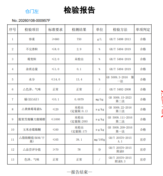 销售详情: 1.出库费:30元/吨,买方在系统交割结算完成前一次性支付给卖方,卖方收到款项后开具对应金额的出库费发票; 2.出库条件:过磅能力——120吨,日出库能力200吨到300吨左右。玉米成交价格为买方仓内自提价,先款后货,出库通知单开具后,卖方凭买方提供的有效提货委托书安排散粮出库,买方出库车辆需服从卖方相关安排。 3.货款期、出库期:买方于 2026 年 4 月6日前将全部货款汇至四川粮油批发中心指定银行账户,于2026年 4月15日前完成出库。2026年2月12日-2026年2月23日不出库。 4.其他要求:①卖方负责散装装车。结算数量以卖方地磅过磅数量为基准,买方不得拒绝清仓提货;②付款结算方式:卖方按买方出库数量分批次结算货款,最终以实际出库数量进行结算。出库完毕后,若仓内玉米出现损耗的,双方按实际的结算数量办理相关结算工作。若实际结算数量超出合同数量,超出部分买方仍按该合同的实际成交单价购买并通过交易平台支付货款;③买方未提前看样或看样后参与应价并成交的,视为对仓内玉米质量已认可,应承担竞买后相应的责任与风险。买方必须保证轮出粮食流向符合国家有关规定,不得再次用作各级储备粮的轮入,否则一切法律和政策责任由买方自行承担;④若买方出现拒绝履约、迟不履约、沉默应对等情形,均视为合同违约;⑤如买方发生违约行为,须承担违约责任及由此给卖方造成的一切损失(包括但不限于买方违约导致卖方另行销售造成的全部损失);⑥本次成交合同履行过程中,如发生损耗或溢余情况时结算遵照《政策性粮食损耗溢余管理办法》执行。 联系人:温经理,联系电话:17380606275 请有意向参与交易的会员提前扦样,了解确认质量情况,确保所竞买的粮油符合自身企业使用用途。 二、时间及交易对象: (一)专场名称:四川竞价销售专场(会员可登录国家粮食交易中心“用户中心”,在右侧专场列表中选择此专场进入) (二)交易时间:2026年2月4日 15:00开始 (三)交易对象:参加竞价交易的对象为国内具有粮油经营资格的企业。 三、报名须知 (一)已注册国家粮食交易平台的省外客户,首次参加四川市场交易须拨打028-86739641(何超)提供报名信息。 (二)未注册客户联系企业所在地省级交易中心办理注册手续。 四、预交保证金 (一)保证金到交易账户后方能参加交易,具体标准为:按拟交易数量,预交粮食10元/吨的交易保证金、150元/吨的履约保证金。 (二)汇款账户信息: (1)农业银行: 账户名称:四川粮油批发中心 账 号:22900101040028109 开 户 行:农行成都市总府支行 (2)农业发展银行: 账户名称:四川粮油批发中心 账号:20351999900100000987591 开户行:中国农业发展银行成都市分行 五、地点: 现场交易地点:成都市上东大街段246号新良大酒店6楼国家粮食四川交易中心。 六、四川粮油批发中心与委托方协商本次交易手续费标准为:成交金额的2‰。交易成交后,竞得方按此标准向批发中心交纳手续费。 七、本公告未尽事宜,按照最新的《四川粮油批发中心粮油竞价销售交易细则》有关规定执行。 八、重要提示: 本次交易使用“国家粮食电子交易平台” 请各位客户注意交易密钥的使用。 专场提前半小时开启,开启后买卖双方需确认足额保证金已转入四川市场交易账户中!为确保交易顺利进行,确认后请勿做出金、开单、验收等导致保证金转出的操作,直至交易结束。 九、咨询方式: 信息部:(028)86739641(注册报名) 交易部:(028)86739689(挂网) 86673089(交割)86739642(结算)交易QQ群(4群):851267261(已添加过交易1、2、3群的无需添加此群)。 财会部:(028)86658896 财务QQ群: 456722361