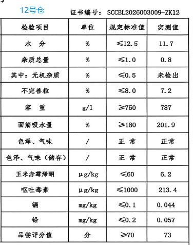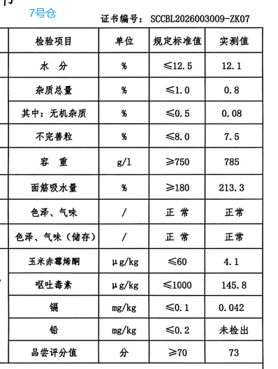 请有意向参与交易的会员提前了解、确认指标要求,确保所供粮食符合购买方要求。 (一)销售详情 1.包装规格:散装。 2.出库费:30元/吨,由买方承担,合同执行完毕后,按双方实际结算数量为准,一次性足额支付给卖方。 3.出库条件:买方仓门自提,出库通知单开具后,卖方凭《出库通知单》和买方提供的提货委托书(派车单)安排散粮出库,买方承运车辆应符合《粮食运输技术指南(试行)》要求,且需服从卖方相关安排。 4.水杂增减量:以交易清单公示水杂含量为准,出库水分每低0.1%增量0.12%,由买方承担,无杂质增(扣)量。 5.其他要求:(1)买方未提前看样或看样后参与应价并成交的,视为对仓内小麦质量已认可,成交后应承担竞买后相应的责任与风险。买方承诺轮出粮食流向符合国家有关规定,不得再次用作各级储备粮的轮入,否则一切法律和政策责任由买方自行承担 。(2)合同结算数量以卖方地磅计量为准,买方不得拒绝清仓提货。出库完毕后,若仓内小麦出现损溢的,双方按《政策性粮食损耗溢余管理办法执行》。 (二)采购详情 1.质量要求:采购2025年产小麦,要求过风过筛的净粮,卖方须提供有资质的第三方质检机构出具的质检报告,第三方的检测报告需于发货前提供给买方,拒收红小麦。质量指标必须符合国家标准《GB1351-2023小麦》二级及以上的质量控制指标,符合国家食品卫生安全标准,《GB2761-2017》食品安全国家标准食品中真菌毒素限量,《GB2762-2022》食品安全国家标准食品中污染物限量,《GB/T20571-2006》小麦储存品质判定规则,《GB2763-2021》食品国家标准食品中农药最大残留限量。脱氧雪腐镰刀菌烯醇≤800ug/kg,超标准拒收;重金属镉含量≤0.08mg/kg,超标准拒收;重金属铅含量≤0.16mg/kg,超标准拒收;玉米赤霉烯酮≤50μg/kg,超标准拒收:水分≤12.5%(每超0.1%扣0.12%比例扣量接收,超出13.0%拒收);不完善粒≤6.0%,每超0.1%扣0.05%,超8.0%拒收;杂质<0.8%,超标拒收);容重≥770g/L:面筋吸水量≥180%、湿面筋含量≥28%,品尝评分值≥70分,以上各项指标超标拒收。2026年新小麦产新后,需入库新小麦,且不同年份的小麦严禁混装。色泽气味异常的、虫粮、新陈混装拒收;检测项目按《四川省地方储备粮出(入)库必检项目》(川粮局函[2021]91号)文件执行,对检测不合格的小麦,买方将做退货处理,因退货造成的一切损失及违约责任由卖方全部承担,同时必须在30天内补足质量合格的等量实物。(3)卖方对质量有争议,可提请双方认可的第三方粮油检测机构检测。 2.包装要求:散装粮或包装粮,包装粮每条扣量120g,不计价,不返还。 3.入库费:30元/吨,由卖方承担,合同执行完毕后,按双方实际结算数量为准,一次性足额支付给买方。 4.入库条件:卖方应按照《粮食运输技术指南(试行)》要求,负责送货到买方指定仓前,经初检合格后入仓。集装箱到库的,原则上只接收敞顶式集装箱,篷布拆解费用由卖方承担。若封闭式集装箱到库,产生的粮食翻倒费用由卖方承担。 5.其他要求:(1)成交合同入库结算数量以买方地磅计量为准。本次采购价格为货到仓内价,合同成交后,若卖方出现拒绝履约、迟不履约、沉默应对等情形,均视为卖方违约,买方有权另行采购,另行采购导致的一切损失(包含但不限于价差损失、导致买方超架空期的损失等)和违约责任,均由卖方承担 。(2)若到库小麦经买方检验不合格,作退货处理,卖方应立即补发足额质量合格的小麦给买方,因退货造成的一切损失及违约责任均由卖方全部承担和赔偿(包括由此给买方带来的一切损失和卖方违约导致买方另行采购造成的一切损失)。 (三)联系人 宋健康,联系电话:13198714990 刘体军,联系电话:13890165563 三、轮换方式:先出后入。 四、轮换时间和结算要求 (一)实施时间:2026年8月30日前完成整个轮换工作,架空期不超90天。 1.本次销售货款期截至2026年5月5日,出库期为2026年4月1日至5月10日。 2.本次采购结算方式:买方于2026年8月25日前将全部货款汇至四川粮油批发中心指定银行账户,入库期为2026年7月20日至8月30日。 (二)结算方式:经初检合格入库后,买方根据实际入库数量,原则上每300吨为一批次支付90%货款,初检结果仅作为是否入库的初步判断,不作为最终验收结果的依据。余下10%货款待合同执行完毕后,买方对质量无异议,凭卖方提供的有效增值税发票5个工作日内结清。 五、时间及交易对象: (一)专场名称: 四川轮换专场(以购竞销)(会员可登录国家粮食交易中心“用户中心”,在右侧专场列表中选择此专场进入) (二)竞价交易时间:2026年3月20日 10:00 开始 (三)交易对象:参加竞价交易的对象为国内具有粮油经营资格的企业。 六、报名须知 (一)已注册国家粮食交易平台的省外客户,首次参加四川市场交易须拨打028-86739641(何超)提供报名信息。 (二)未注册客户联系企业所在地省级交易中心办理注册手续。 七、预交保证金 (一)保证金到交易账户后方能参加交易,具体标准为:按拟交易数量,预交粮食10元/吨的交易保证金、150元/吨的履约保证金;销售和采购均须缴纳保证金。 (二)汇款账户信息 1.农业银行 账户名称:四川粮油批发中心 账 号:22900101040028109 开户行:农行成都市总府支行 2.农业发展银行 账户名称:四川粮油批发中心 账号:20351999900100000987591 开户行:中国农业发展银行成都市分行 八、地点 现场交易地点:成都市上东大街段246号新良大酒店6楼国家粮食四川交易中心。 九